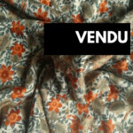 Trouvée au détour d’une chine, cette étoffe a immédiatement captivé le regard : un jersey souple, orné de fleurs couleur miel et safran sur fond ivoire, empreint d’une élégance intemporelle.