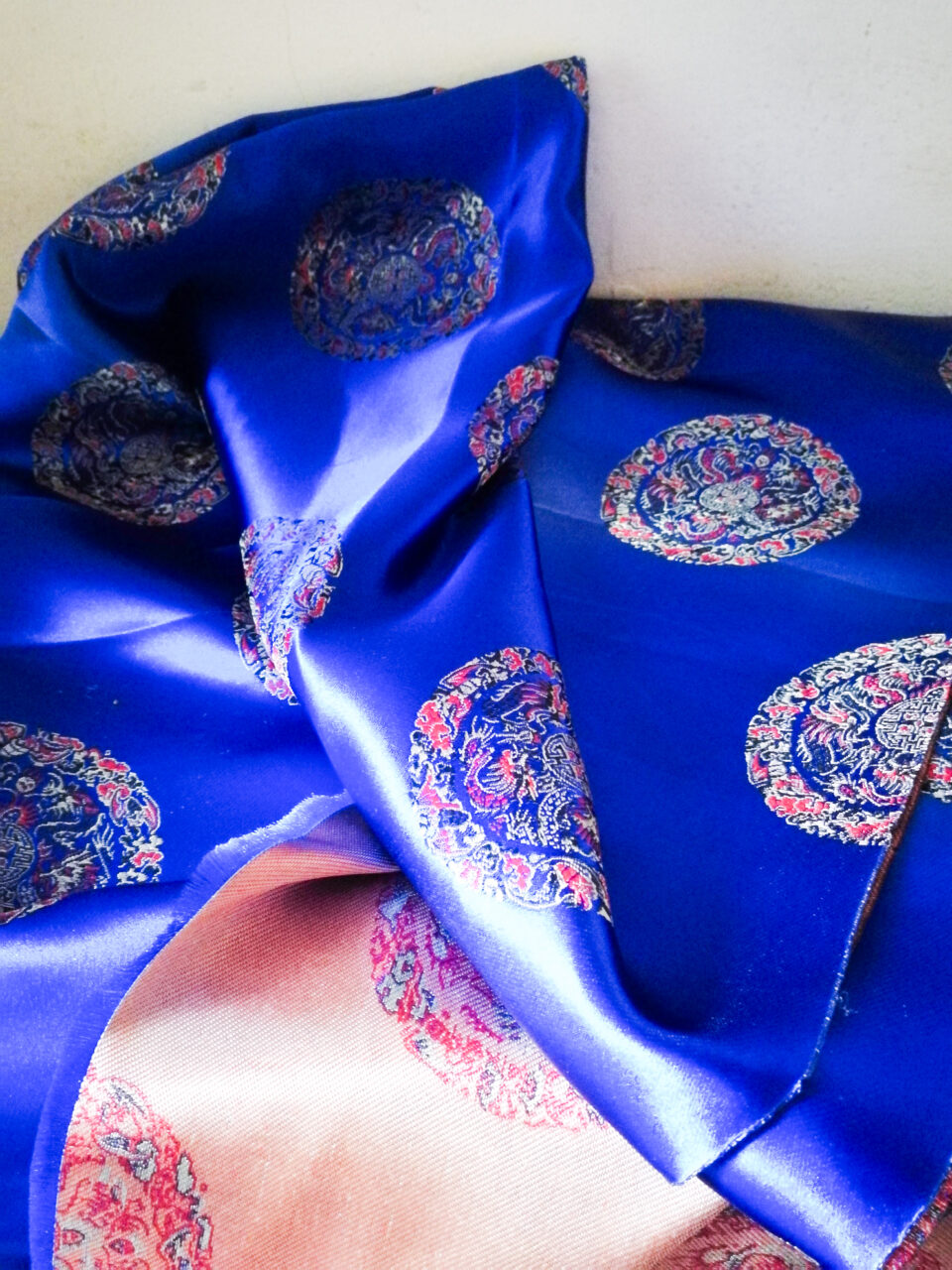 IMPÉRIAL COBALT — Tissu à aspect jacquard satiné — 89 × 415cm — PIECE UNIQUE