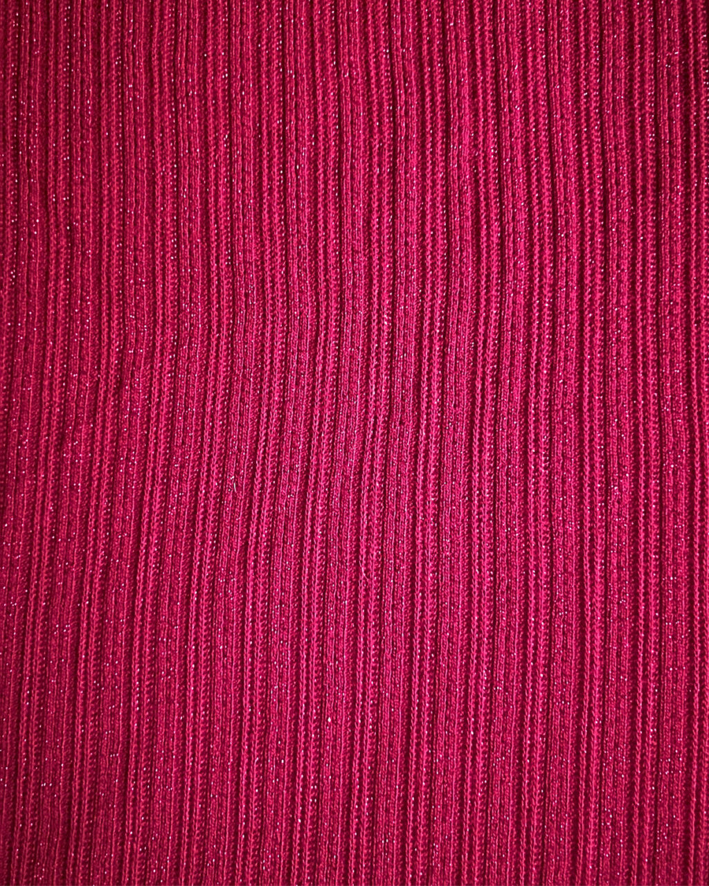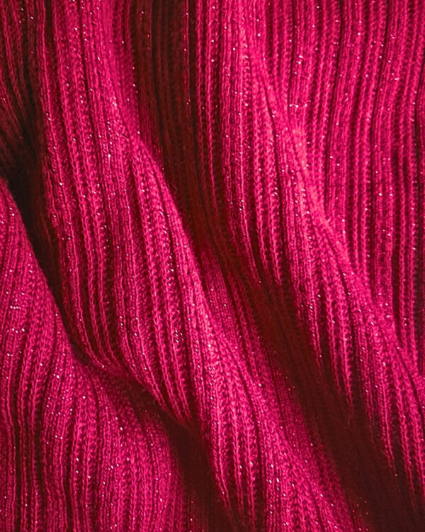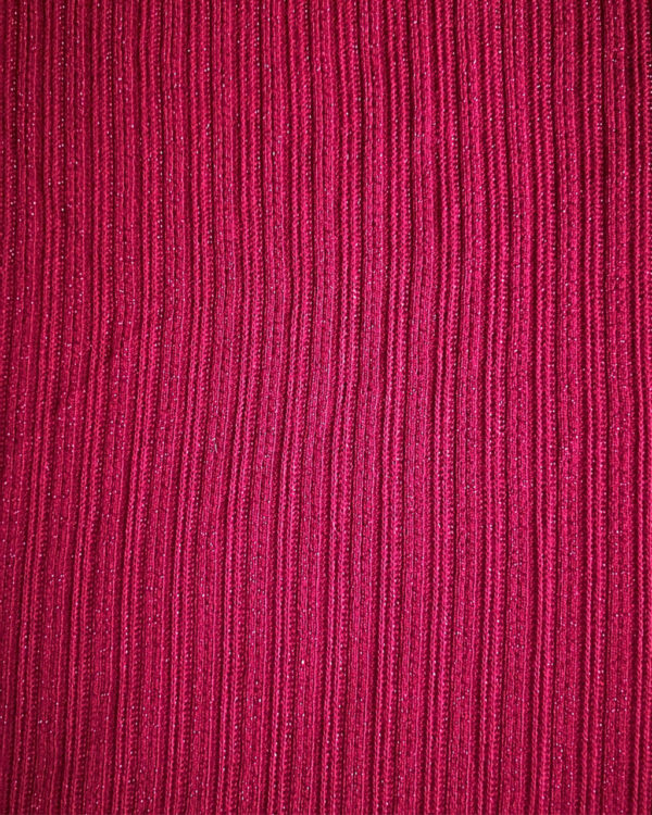 Composition estimée : maille laine/acrylique côtelée avec fil lurex discret