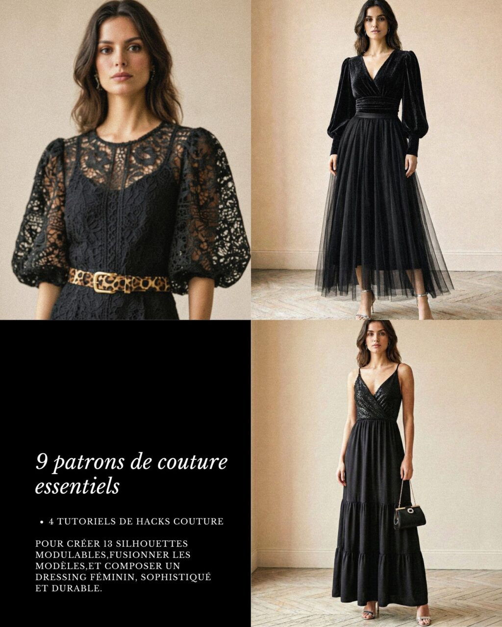 C’est une vision du dressing couture, imaginée pour créer des silhouettes féminines, élégantes et modulables, à partir de patrons existants et de transformations maîtrisées.