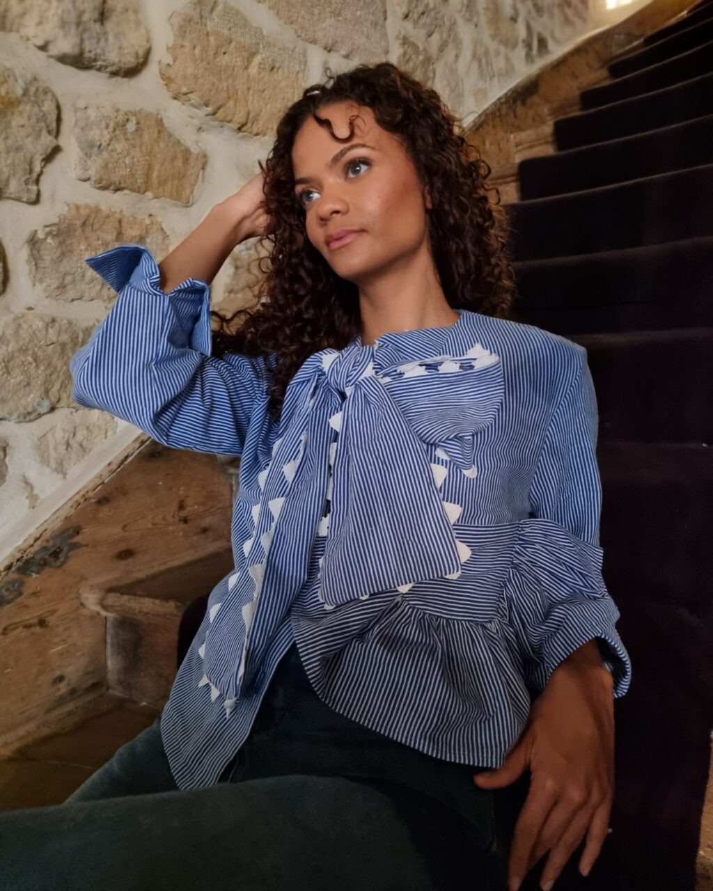 Ce patron est accompagné d’un tutoriel de hack couture exclusif, qui vous guide pas à pas pour transformer le patron Body Romy en blouse.