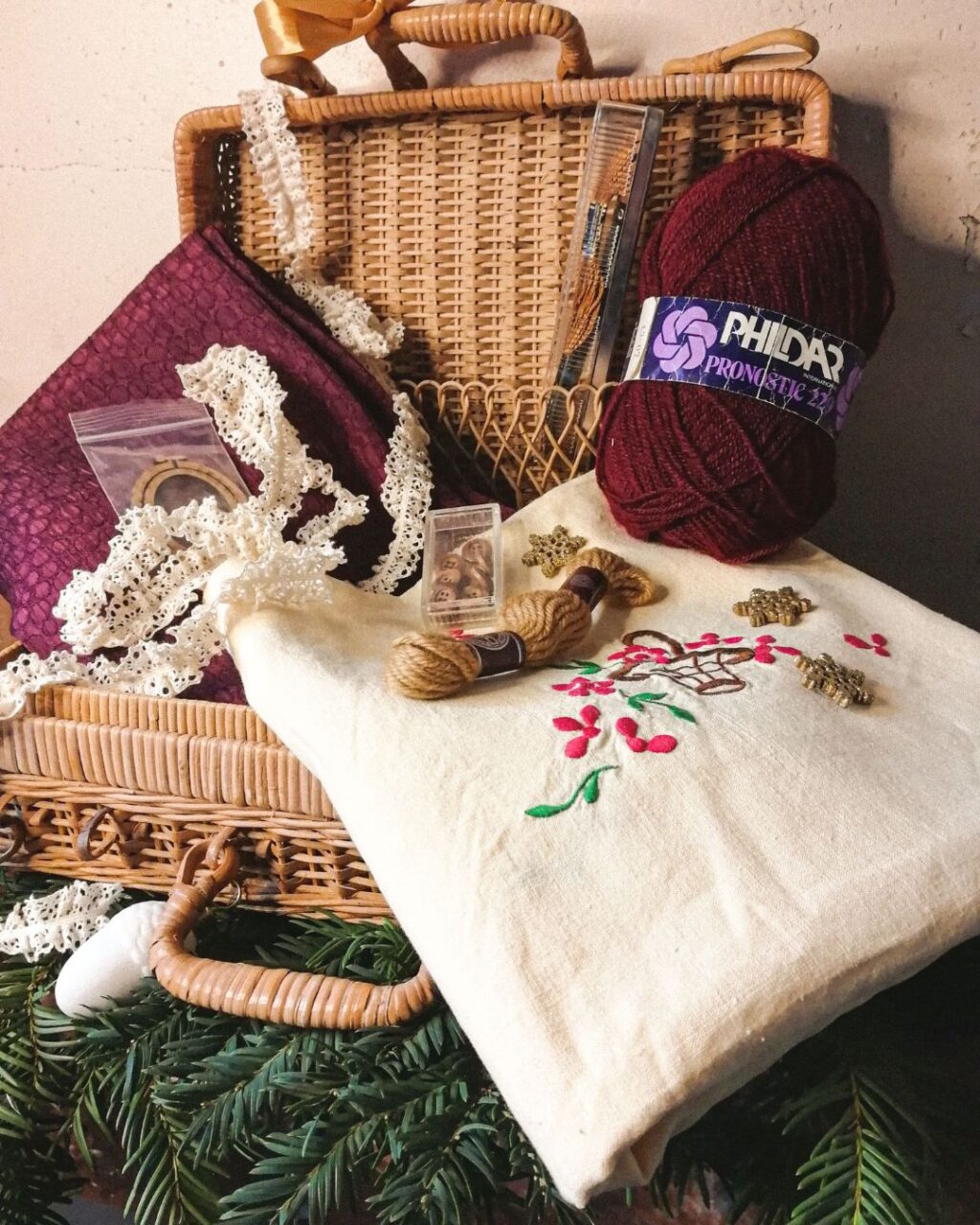 Elle renferme une sélection de matières rares, de mercerie rétro et d’étoffes au caractère exceptionnel — soigneusement choisies pour inspirer vos projets couture, broderie ou upcycling.
