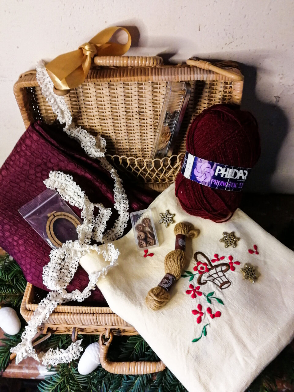 Cette valisette en rotin tressé, chinée avec soin, est une véritable trouvaille d’atelier : une pièce vintage authentique, patinée par le temps, transformée en coffret créatif précieux.